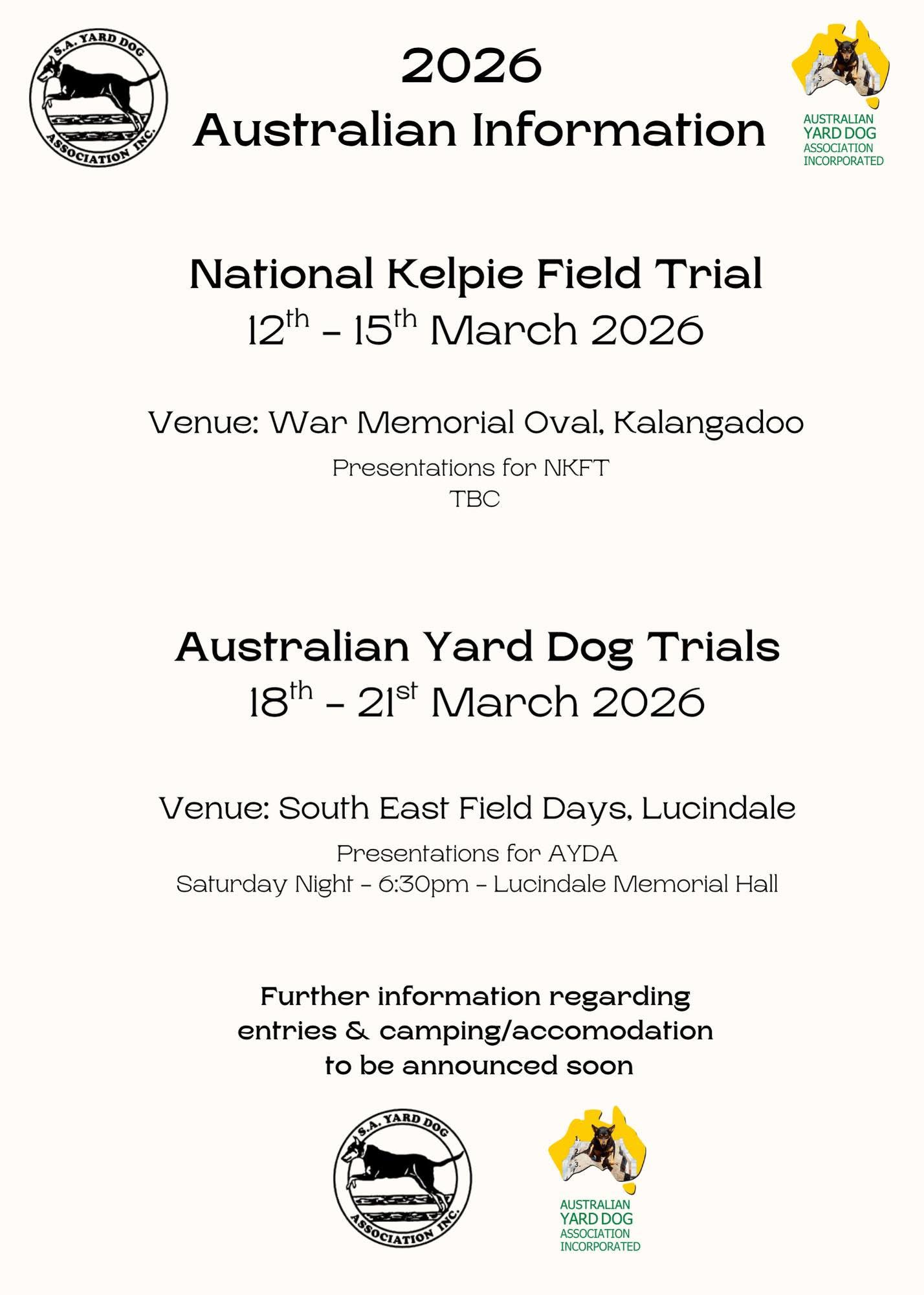To be eligible for any Annual Awards the handler must have paid their membership to the SAYDA by 1st October for the Financial year, and have competed in a minimum of three trials during that financial year.